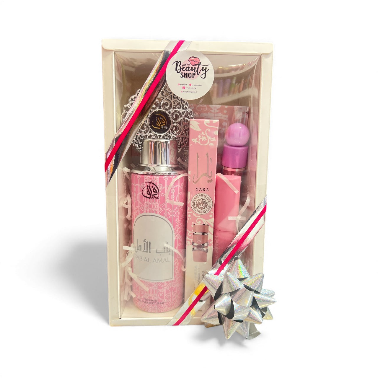 Deodorante corpo, profumo 35ml, patch labbra, mascara, blush